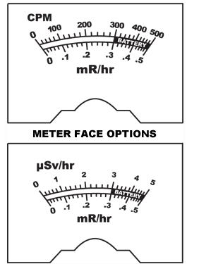 模擬儀表滿飽和可達(dá)到高量程的100倍,字段中保持滿量程。CPM和mR / hr標(biāo)度。可選的SI刻度表