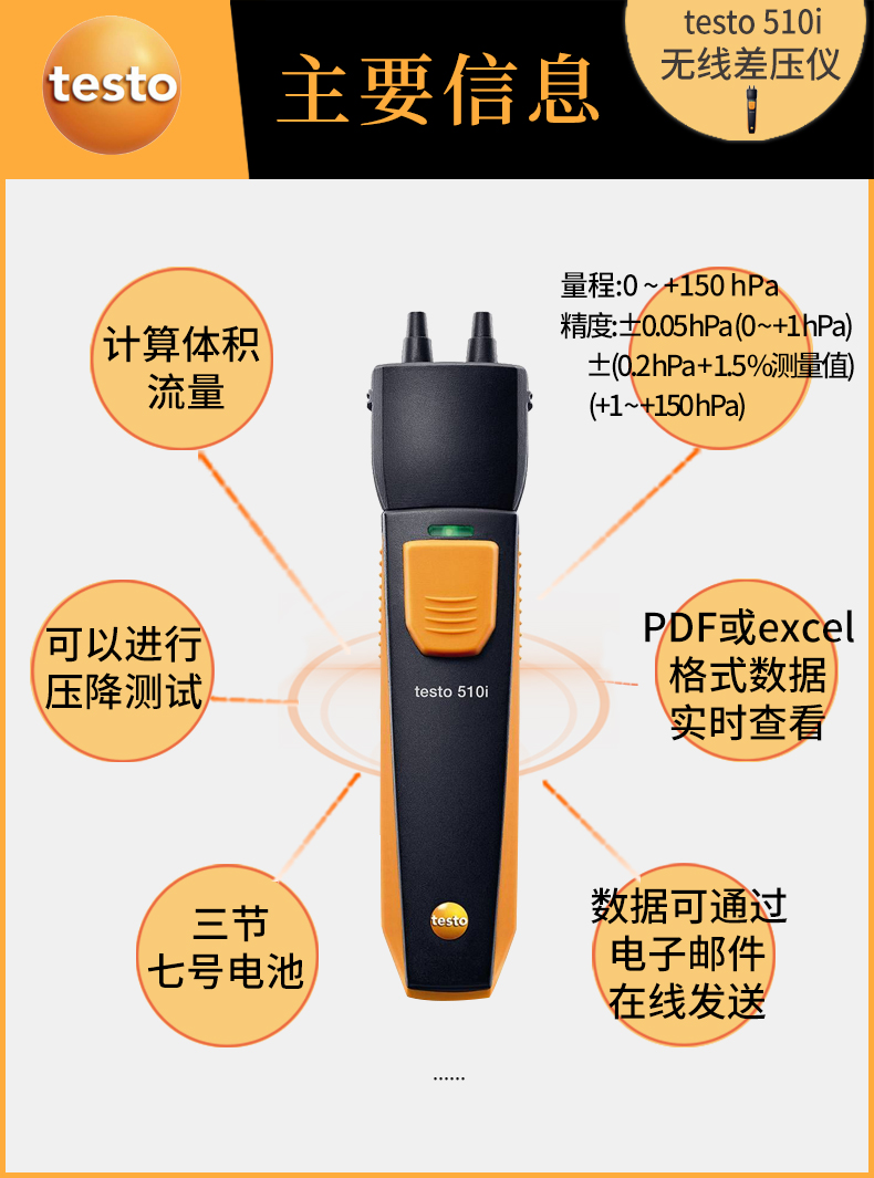 德圖testo510i無(wú)線藍(lán)牙連接手機(jī)APP 數(shù)字差壓計(jì)