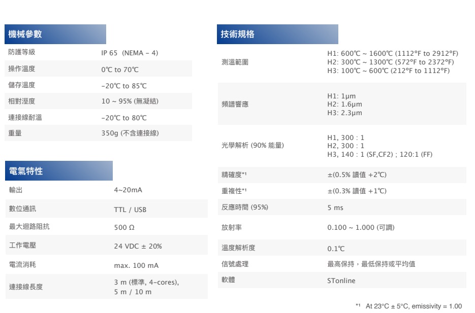 精確度*1 ±(0.5% 讀值 +2℃)